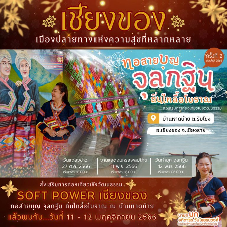 21 ต.ค. 2023 1473 เชิญเที่ยวงาน “ทอสายบุญ จุลกฐิน ถิ่นไทลื้อโบราณ” อ.เชียงของ | 11-12 พ.ย.นี้