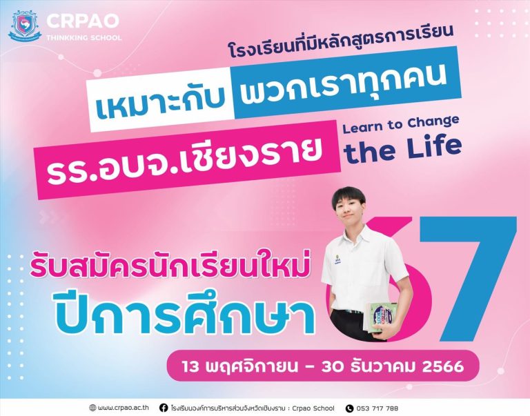 13 ต.ค. 2023 12370 โรงเรียนองค์การบริหารส่วนจังหวัดเชียงราย รับสมัครนักเรียนเข้าศึกษาต่อ ระดับ ป.1 , ม.1 , ม.4 ปีการศึกษา 2567