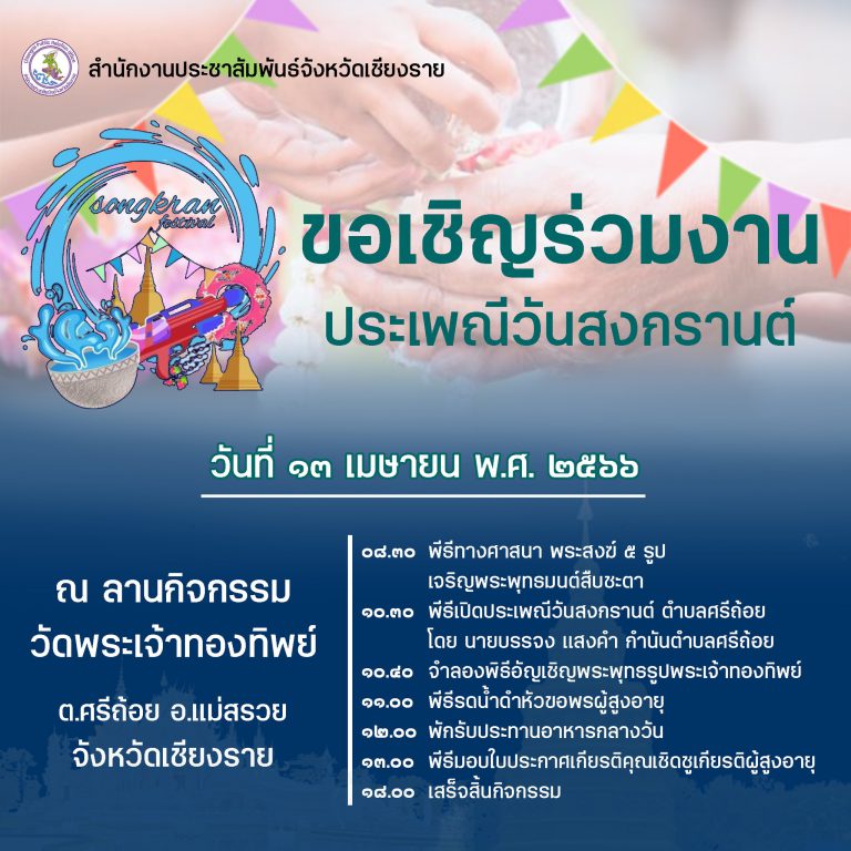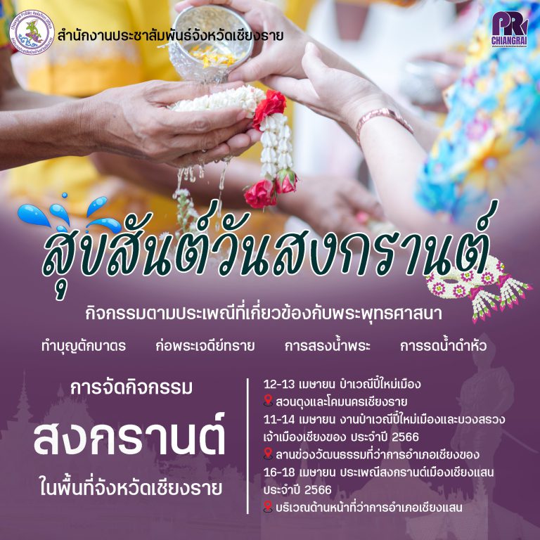 09 เม.ย. 2023 3014 ททท.เชียงราย เชิญชวนทุกท่านมาร่วมสืบสานงานประเพณีสงกรานต์ เชียงราย-พะเยา 2566