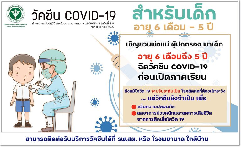 22 เม.ย. 2023 911 เชิญชวนพ่อแม่ ผู้ปกครอง พาเด็กอายุ 6 เดือน – 5 ปี ฉีดวัคซีน COVID-19 ก่อนเปิดภาคเรียน