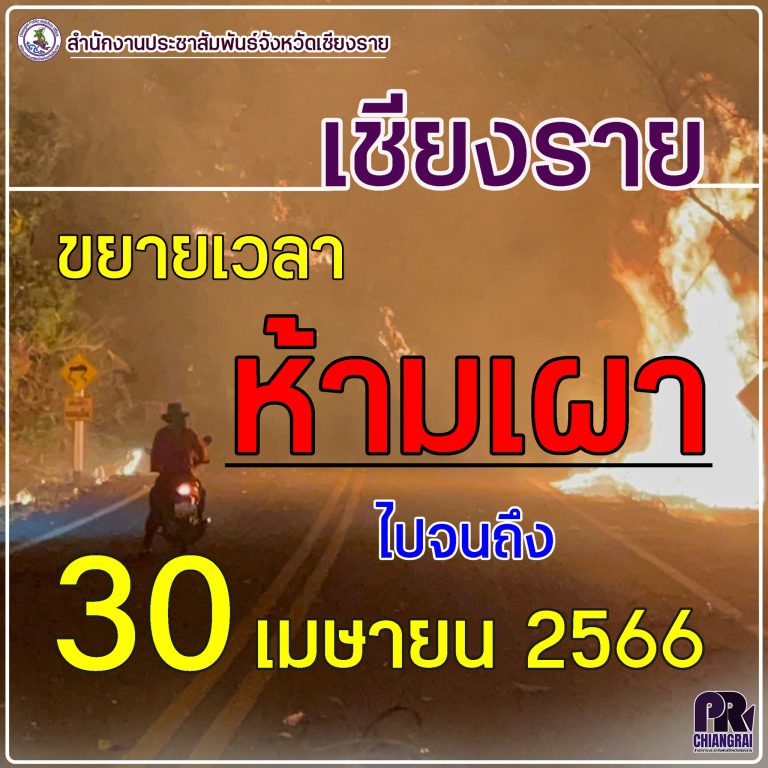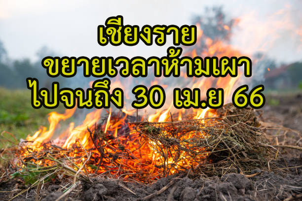 12 เม.ย. 2023 3926 “ห้ามเผา” จังหวัดเชียงรายขยายเวลา ห้ามเผา ไปจนถึง 30 เมษายน 2566