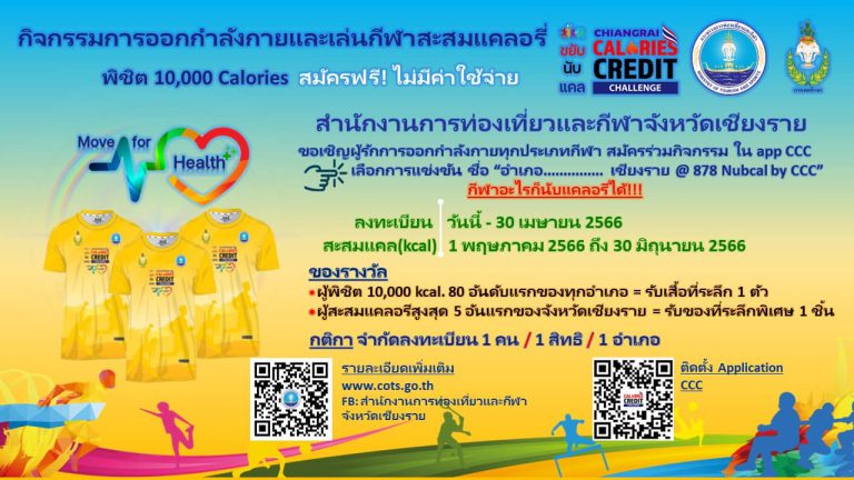 20 เม.ย. 2023 1190 ชวนสมัครร่วมกิจกรรม “เชียงราย ขยับ นับแคล”… กีฬาอะไรก็นับแคลอรี่ได้ !!