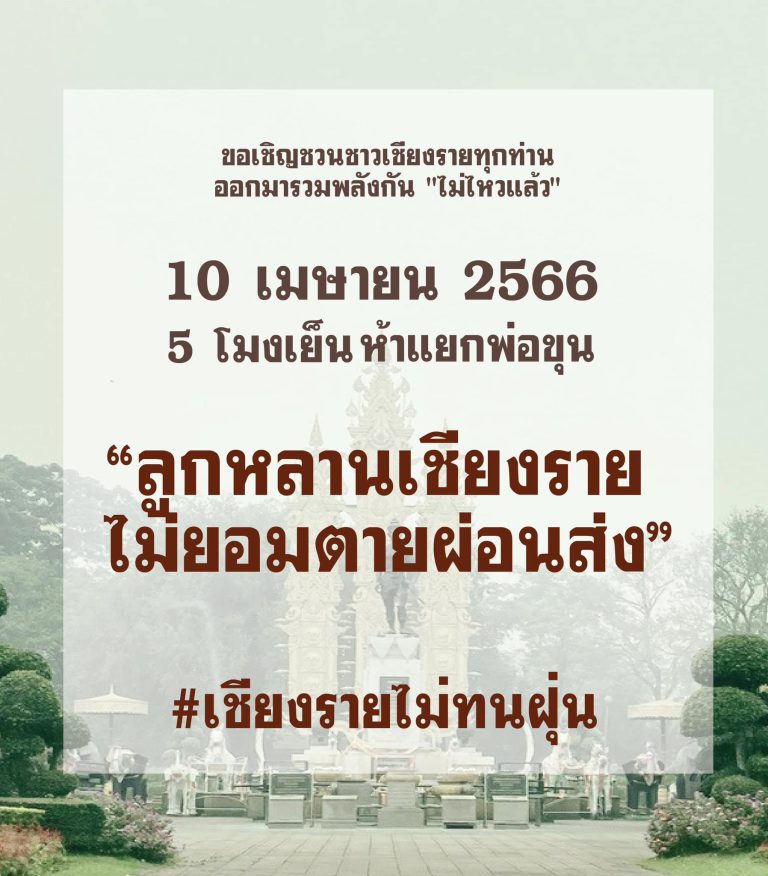 10 เม.ย. 2023 1314 วันนี้ 5 โมงเย็น | เชิญชวนชาวเชียงรายออกมารวมพลัง #เชียงรายไม่ทนฝุ่น ณ ห้าแยกพ่อขุน