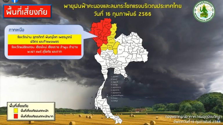 15 ก.พ. 2023 1499 กรมอุตุฯ ออกประกาศเตือน อากาศแปรปรวนบริเวณประเทศไทยตอนบน 16-17 ก.พ 66