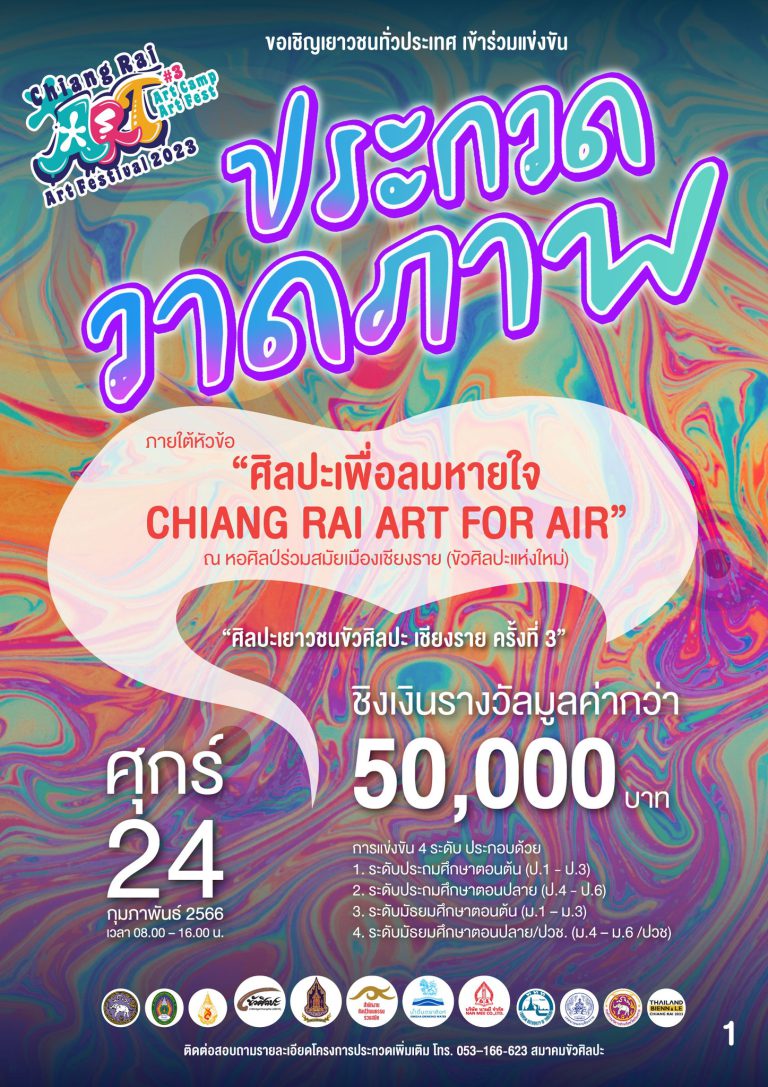 05 ก.พ. 2023 2426 ขอเชิญเยาวชนทั่วประเทศ เข้าร่วมแข่งขันวาดภาพ “ศิลปะเยาวชนขัวศิลปะ ครั้งที่ 3” ชิงเงินรางวัลมูลค่ากว่า 50,000 บาท