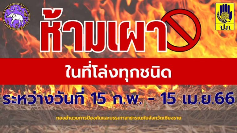 04 ก.พ. 2023 2974 เชียงรายออกประกาศห้ามเผาเด็ดขาด 60 วัน ตั้งแต่ “15 ก.พ. -15 เม.ย.66”