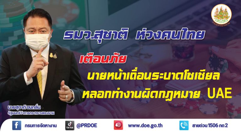 01 ก.พ. 2023 618 เตือนนายหน้าเถื่อนระบาดโซเชียล หลอกคนไทยเดินทางเข้า UAE ทำงานพนันออนไลน์ และ นวดแฝง