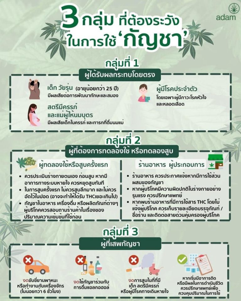 21 มิ.ย. 2022 2258 ปลดล็อกกัญชา แล้ววันนี้ .. 3 กลุ่ม ที่ต้องระวังในการใช้ “กัญชา” ..(สาระน่ารู้)