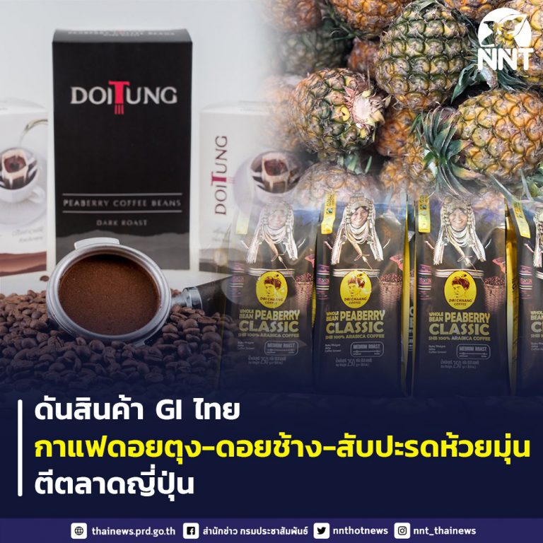26 มิ.ย. 2022 3469 พาณิชย์ ดัน 3 สินค้า GI ไทย กาแฟดอยตุง กาแฟดอยช้าง สับปะรดห้วยมุ่น สู่ตลาดญี่ปุ่น สร้างรายได้ให้เกษตรกรท้องถิ่นกว่า 1,200 ล้านบาท