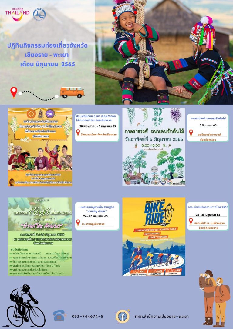 03 มิ.ย. 2022 9423 ปฏิทินกิจกรรมท่องเที่ยวจังหวัด เชียงราย-พะเยา เดือนมิถุนายน 2565