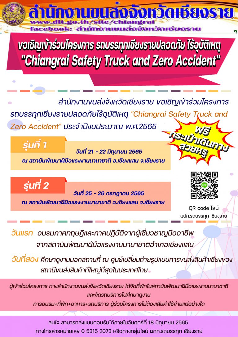 16 มิ.ย. 2022 2791 ขนส่งเชียงราย ขอเชิญเข้าร่วมโครงการ รถบรรทุกเชียงรายปลอดภัย ไร้อุบัติเหตุ “Chiangrai Safety Truck and Zero Accident”