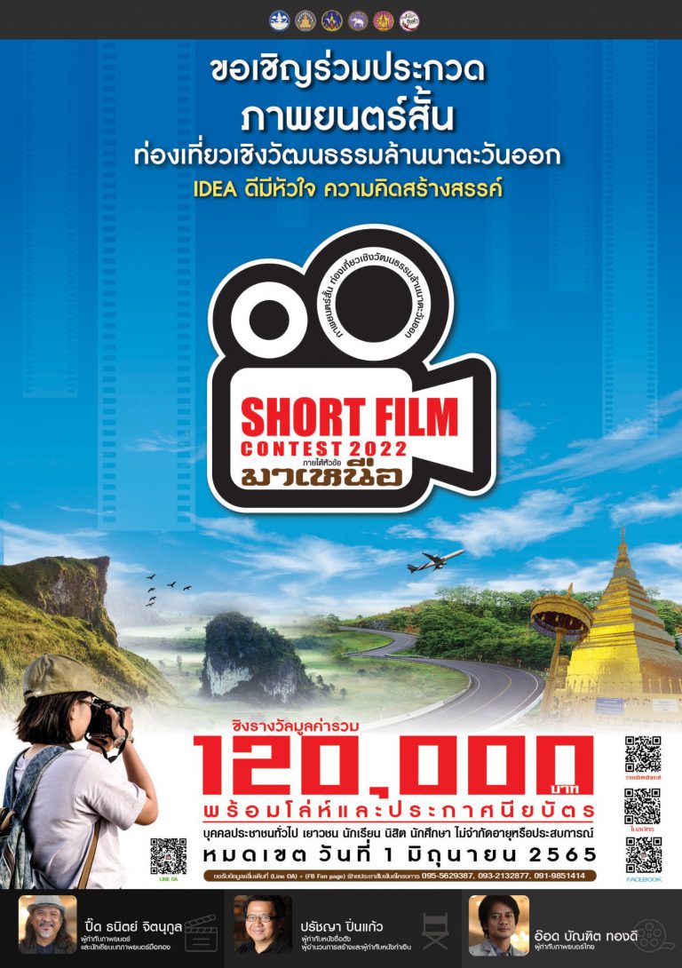 28 พ.ค. 2022 1403 เชิญร่วมประกวดภาพยนตร์สั้น ส่งเสริมท่องเที่ยวเชิงวัฒนธรรมล้านนาตะวันออก “Short film contest 2022” ภายใต้หัวข้อ “มาเหนือ”