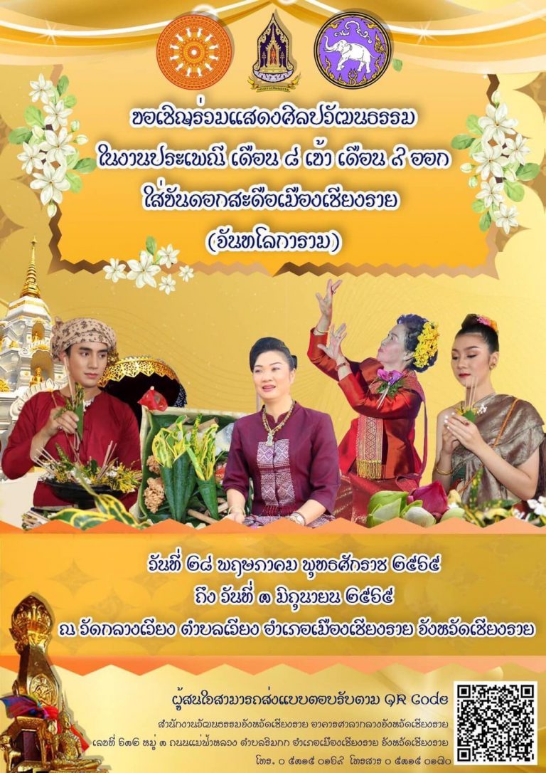 25 พ.ค. 2022 3984 ขอเชิญร่วมงานประเพณี “เดือน ๘ เข้า เดือน ๙ ออก ใส่ขันดอกวัดกลางเวียง”