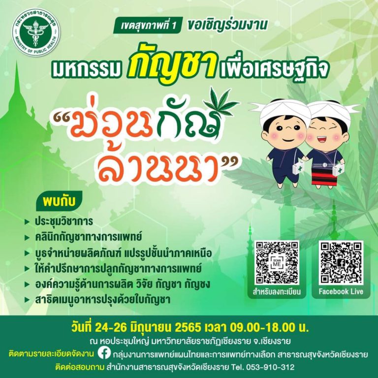 22 พ.ค. 2022 2138 สายเขียวห้ามพลาด!! งานมหกรรมกัญชาเพื่อเศรษฐกิจ “ม่วนกัญ ล้านนา”