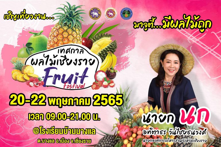 18 พ.ค. 2022 4022 เชิญร่วมประกวดธิดาชาวสวน ประกวดผลผลิตทางการเกษตร และอีกหลายกิจกรรม ในงาน “เทศกาลผลไม้จังหวัดเชียงราย ประจำปี 2565”