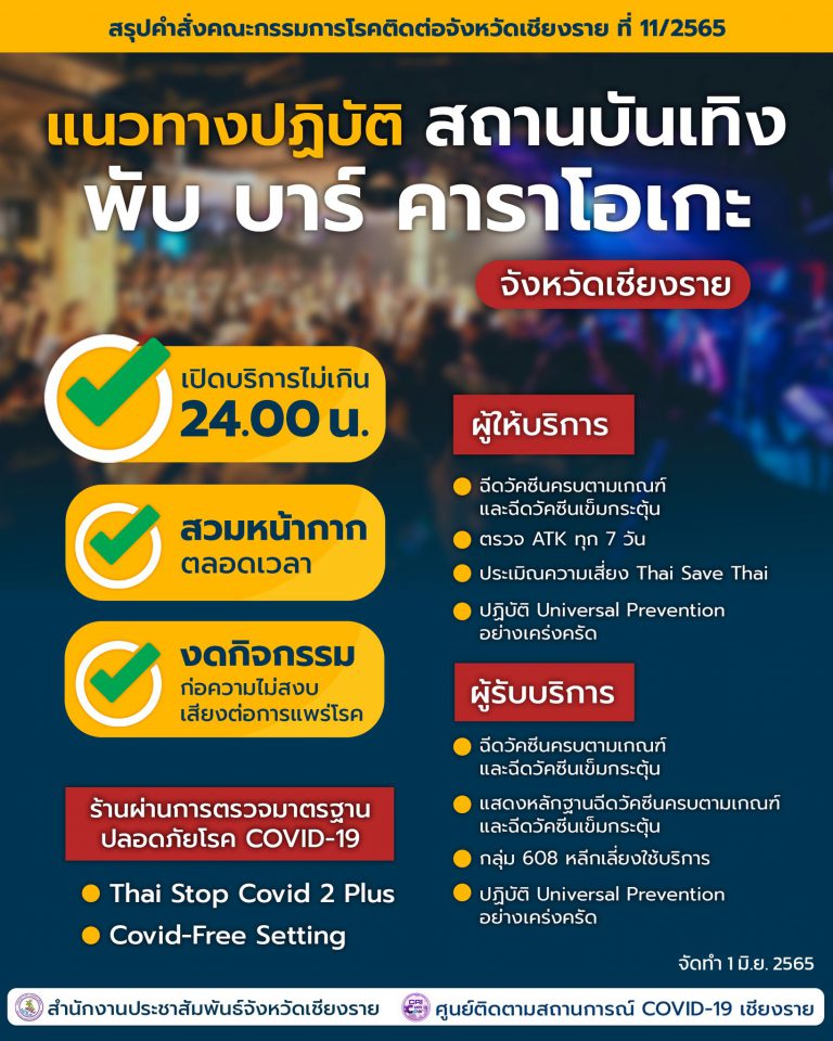 02 มิ.ย. 2022 1794 แนวทางปฏิบัติสถานบันเทิง ผับ บาร์ คาราโอเกะ จ.เชียงราย