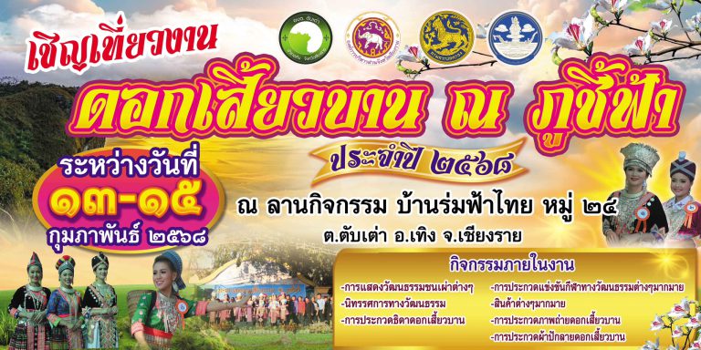 จังหวัดเชียงรายเตรียมจัดงานประเพณีนมัสการและสรงน้ำพระธาตุดอยตุง ประจำปี 2568 “2007 ปีสืบมา หกเป็งล่องฟ้า ไหว้สาพระธาตุดอยตุง”
