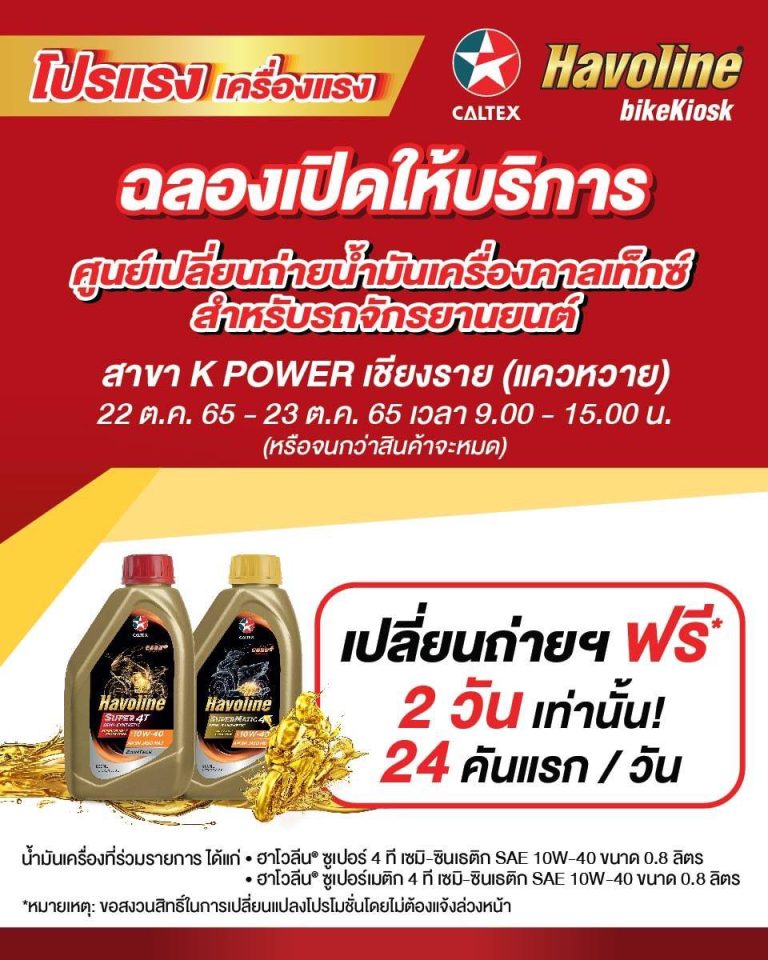 Caltex Techron น้ำมันคุณภาพสูง …พร้อมเปิดให้บริการที่ปั๊มคาลเท็กซ์ เคพาวเวอร์ เชียงราย ทั้ง 2 สาขา