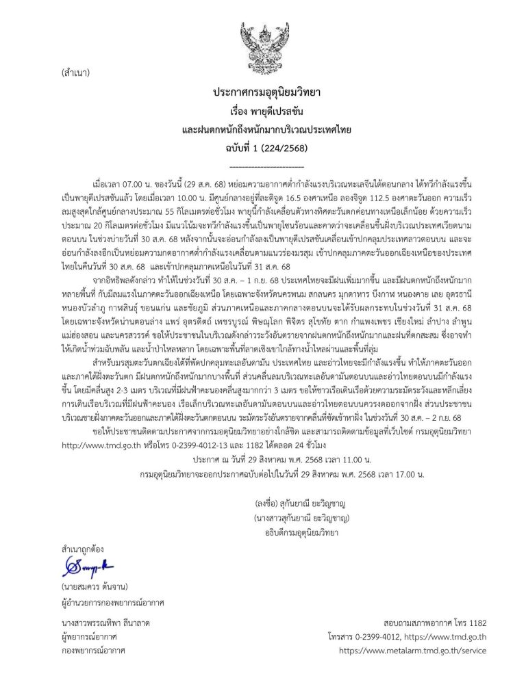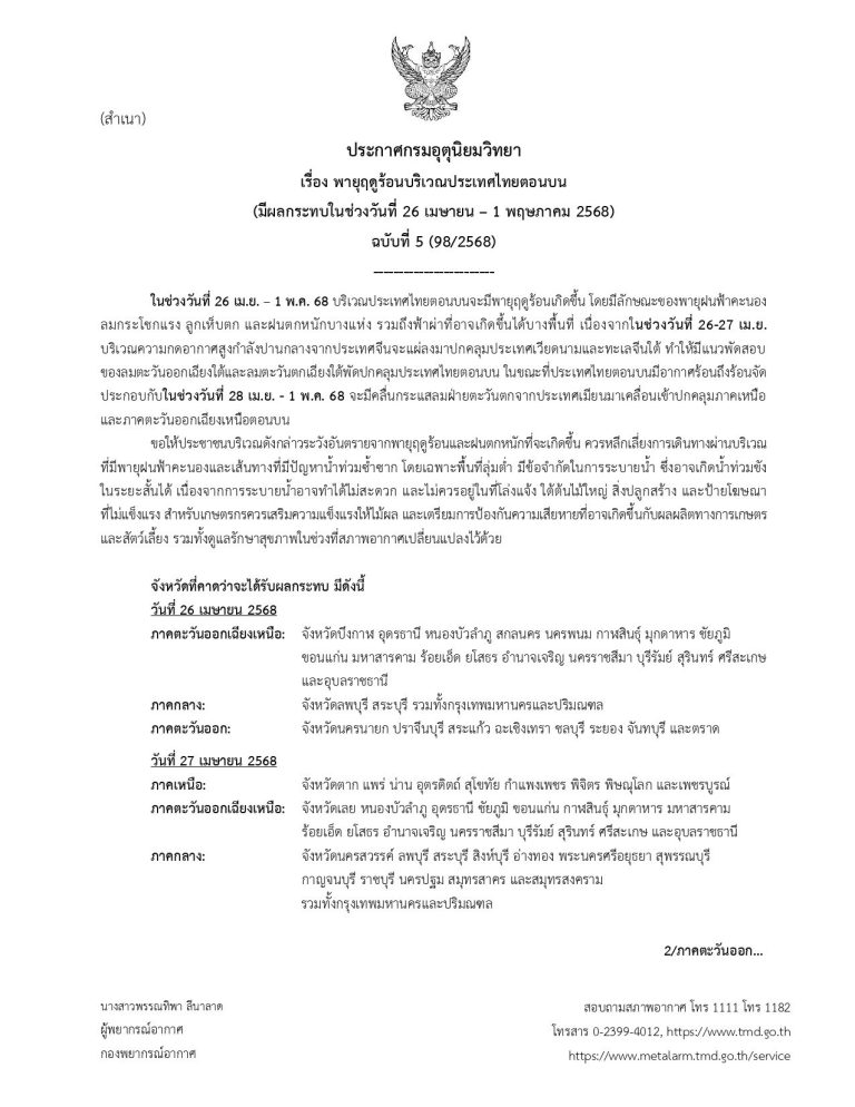 ปภ.เน้นย้ำ 44 จังหวัด ภาคเหนือ ภาคตะวันออกเฉียงเหนือ และภาคกลาง เฝ้าระวังพายุฝนฟ้าคะนองและลมกระโชกแรง ในช่วงวันที่ 29 เม.ย. – 1 พ.ค. 68
