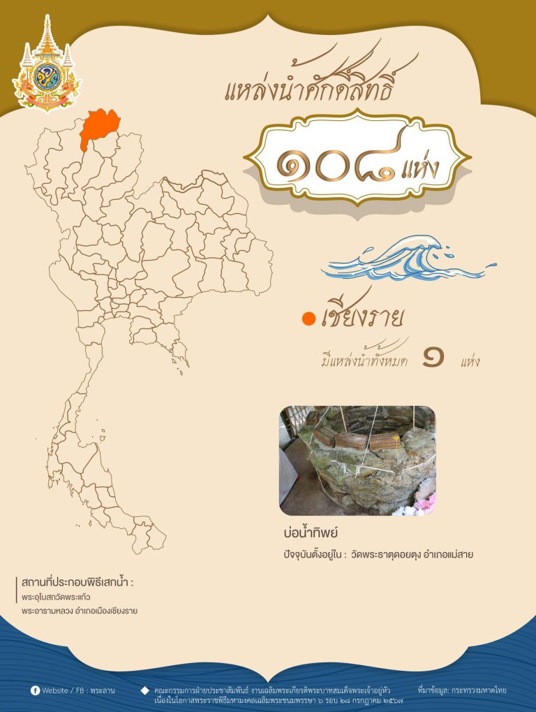 ขบวนเชิญน้ำศักดิ์สิทธิ์ไปยังวัดพระแก้วเชียงราย ในพิธีพลีกรรมตักน้ำศักดิ์สิทธิ์เฉลิมพระเกียรติฯ ครบ 6 รอบ จังหวัดเชียงราย ประกอบพิธีพลีกรรมตักน้ำศักดิ์สิทธิ์ เฉลิมพระเกียรติพระบาทสมเด็จพระเจ้าอยู่หัวฯ เนื่องในโอกาสพระราชพิธีมหามงคลเฉลิมพระชนมพรรษา 6 รอบ 28 กรกฎาคม 2567 [cmruncode name="GoogleADS"] วันที่ 4 กรกฎาคม 2567 เวลา 14.49 น.ที่บ่อน้ำทิพย์ วัดพระธาตุดอยตุง ตำบลห้วยไคร้ อำเภอแม่ส
