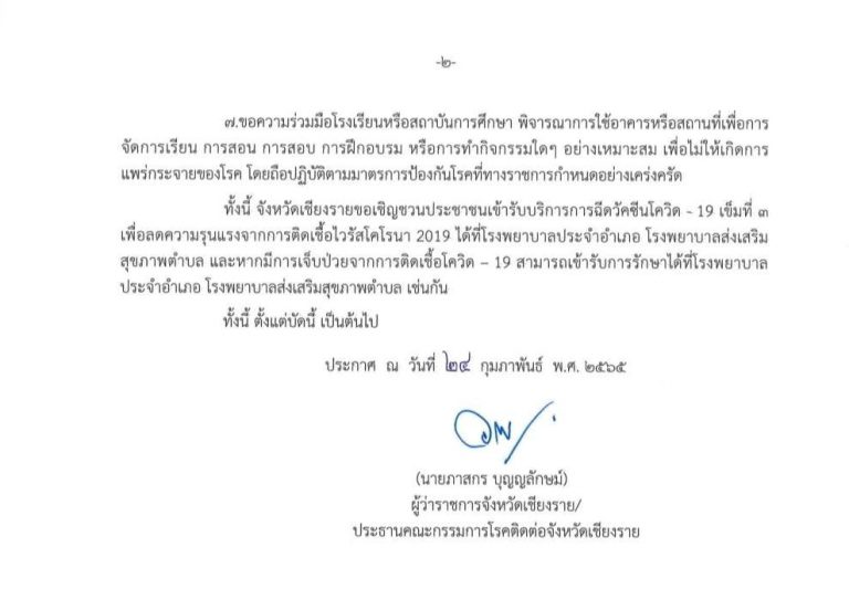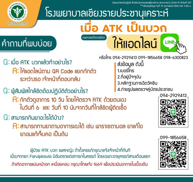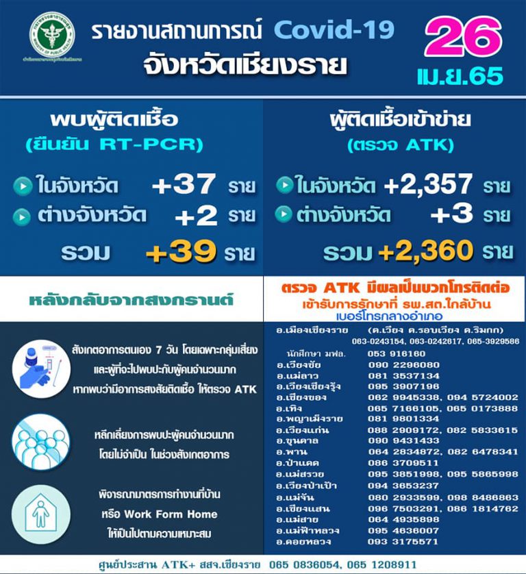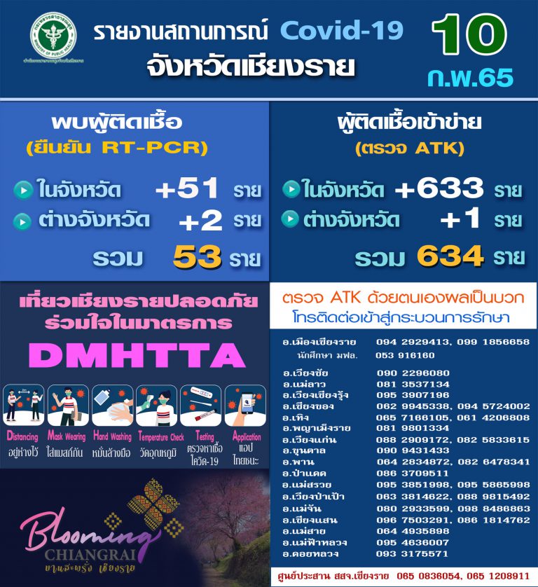 เชียงราย.. สถานการณ์โรค Covid-19 วันที่ 10 กุมภาพันธ์ 2565″พบคลัสเตอร์ระบาดหลายแห่ง”